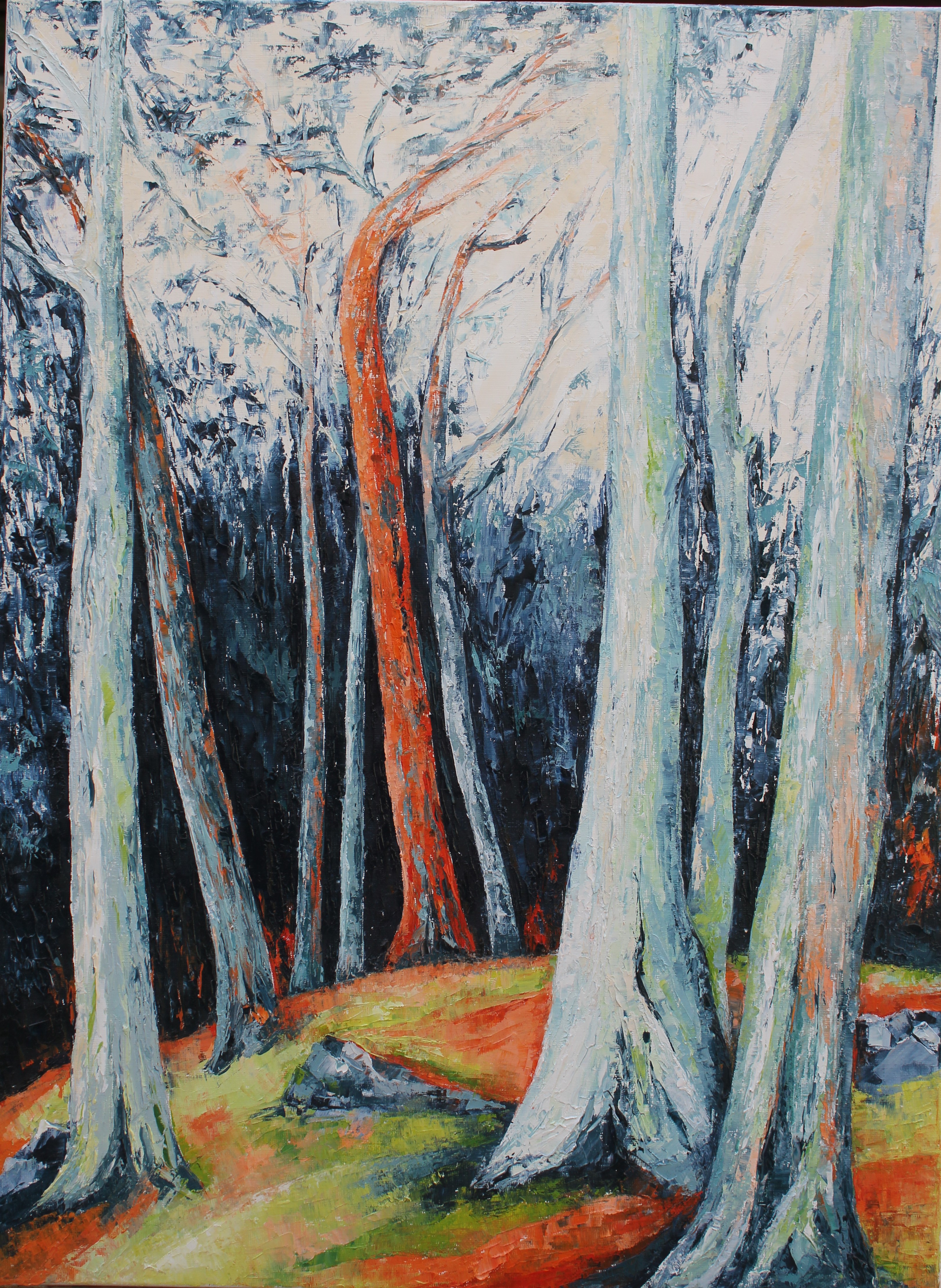 je les ai vus, sur ma droite, ces troncs, rassemblés, et instantanément j’ai placé le chevalet face à eux. Complicité immédiate.
